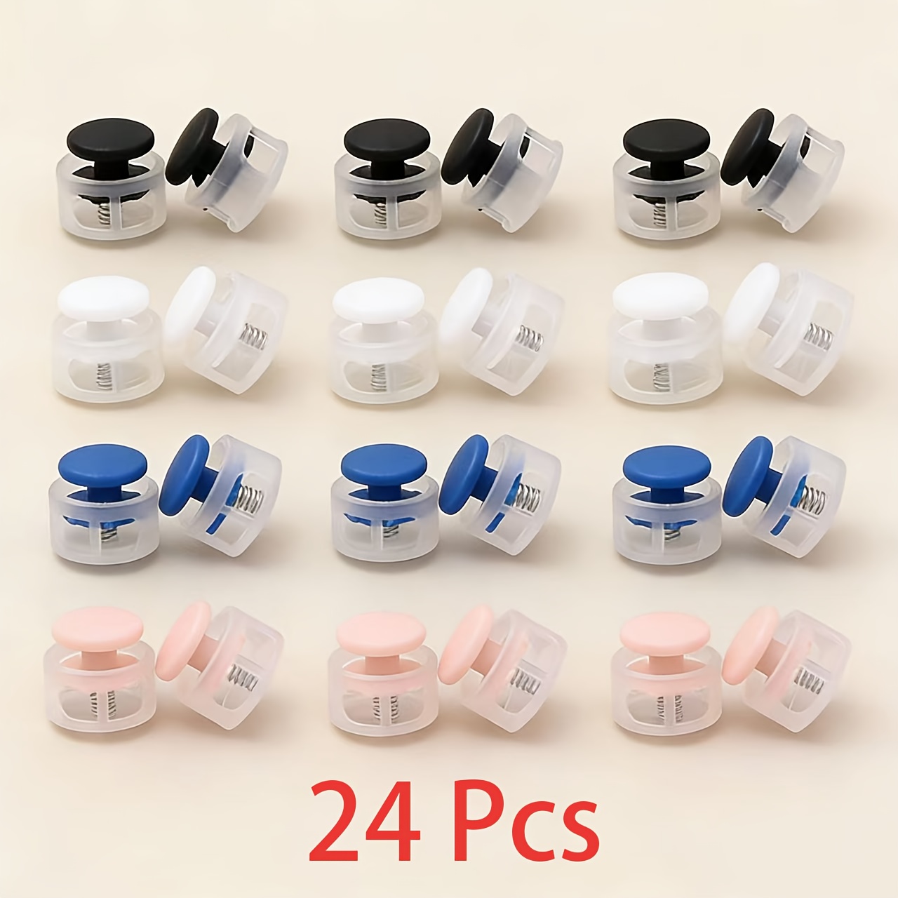 TEMU 24개 더블 홀 탄성 코드 잠금 장치 - 땀복 및 신발끈 조절 가능, 내구성이 뛰어난 플라스틱 퀵 릴리스 버클 재질, 스포츠 및 캐주얼 신발에 적합, 신발끈 묶지 않고 간편하게 설치 가능