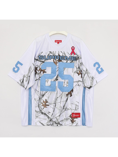 [슈프림] 슈프림 25FW 패치로고 브레스트 캔서 어웨어니스 풋볼 저지 반팔 남성 티셔츠 FW25KN26 WHITE