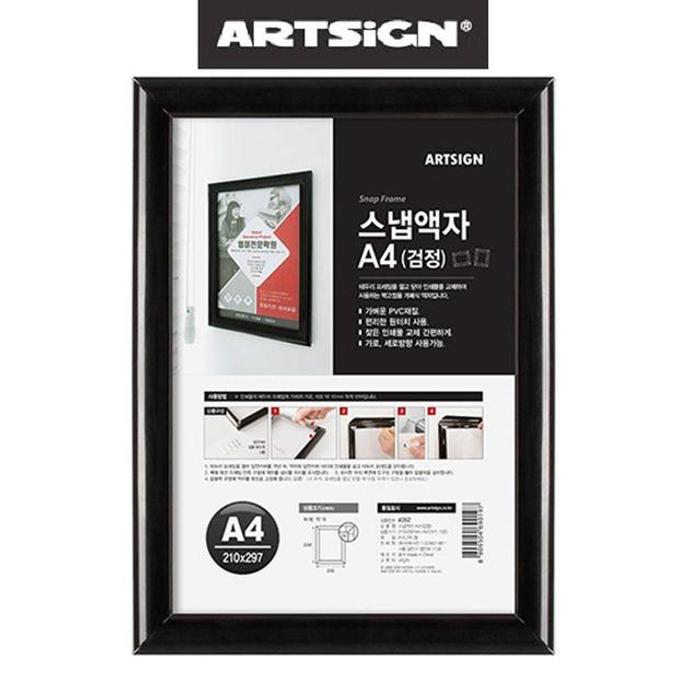 친절한탄씨 검정 벽부착 원터치 개폐식 스냅사진 액자 A4