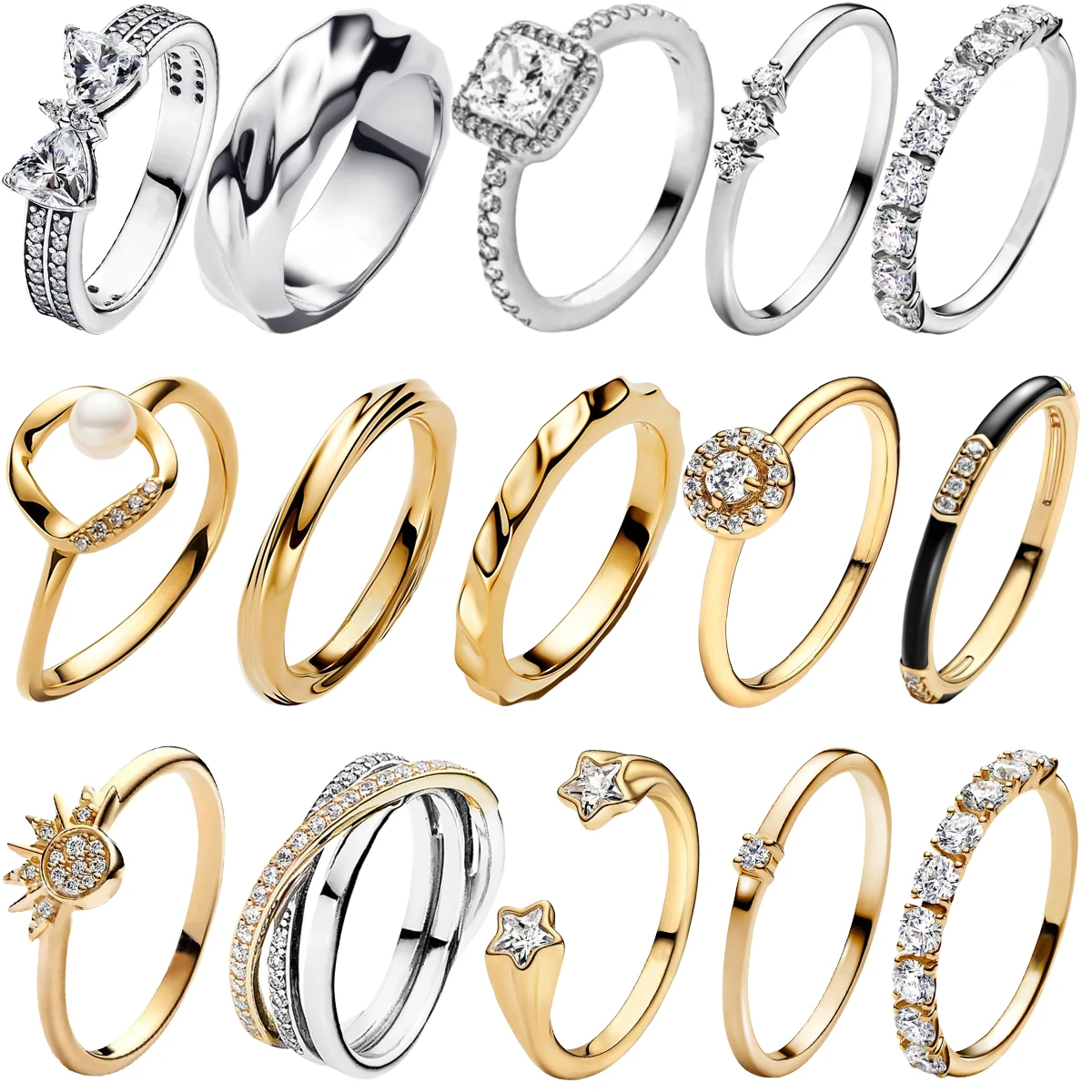 여성을위한 블루 925 스털링 실버 반지 반지 원래 패션 쥬얼리 액세서리 문 눈송이 하트 선물 웨딩 Patry