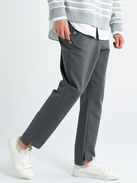 [커스텀어스] 버튼포인트 밴딩 슬림핏 팬츠