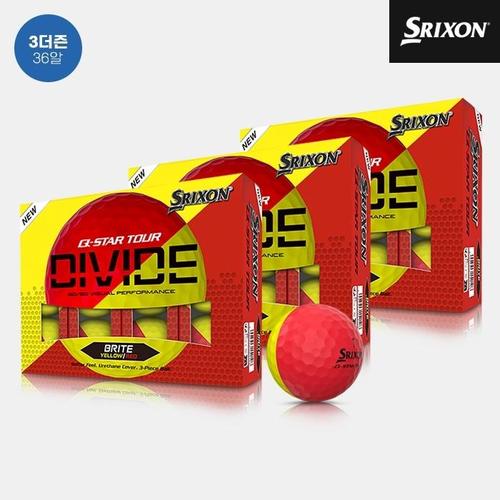 3더즌 36알 던롭코리아 정품 스릭슨 Q-STAR 투어 5 디바이드 골프볼남여공용 옐로우레드 3피스