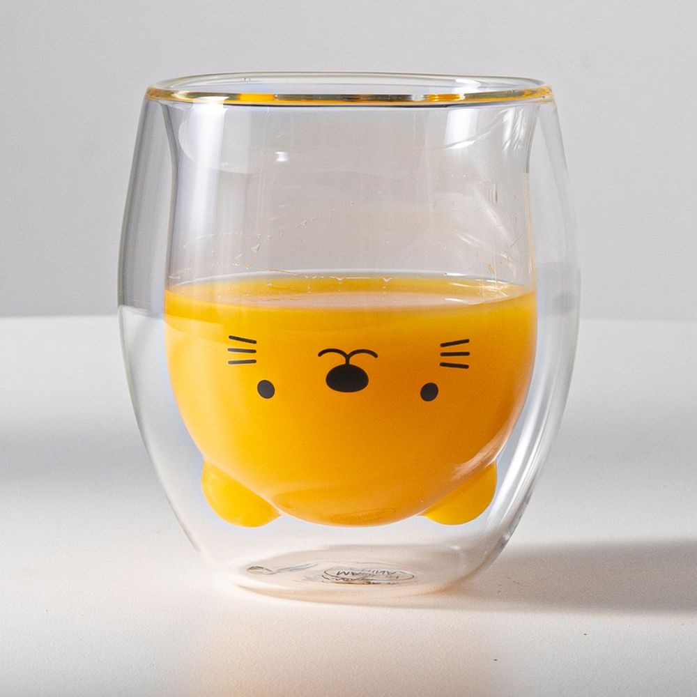 1+1 소소 이중 내열 애니멀 유리컵 스마일 캣 290ml