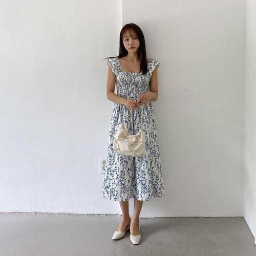 [셀러허브_여성트랜드패션]ONM 러블리 잔꽃 패턴 스모크 밴딩 오프숄더 블라우스