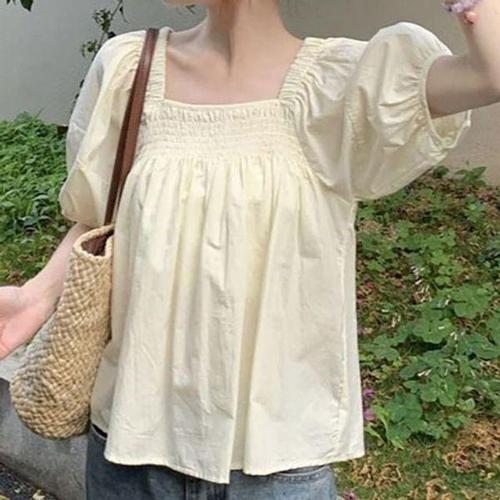 [셀러허브_여성트랜드패션]ONM 여성 벌룬 퍼프소매 스모크 밴딩 스퀘어넥 블라우