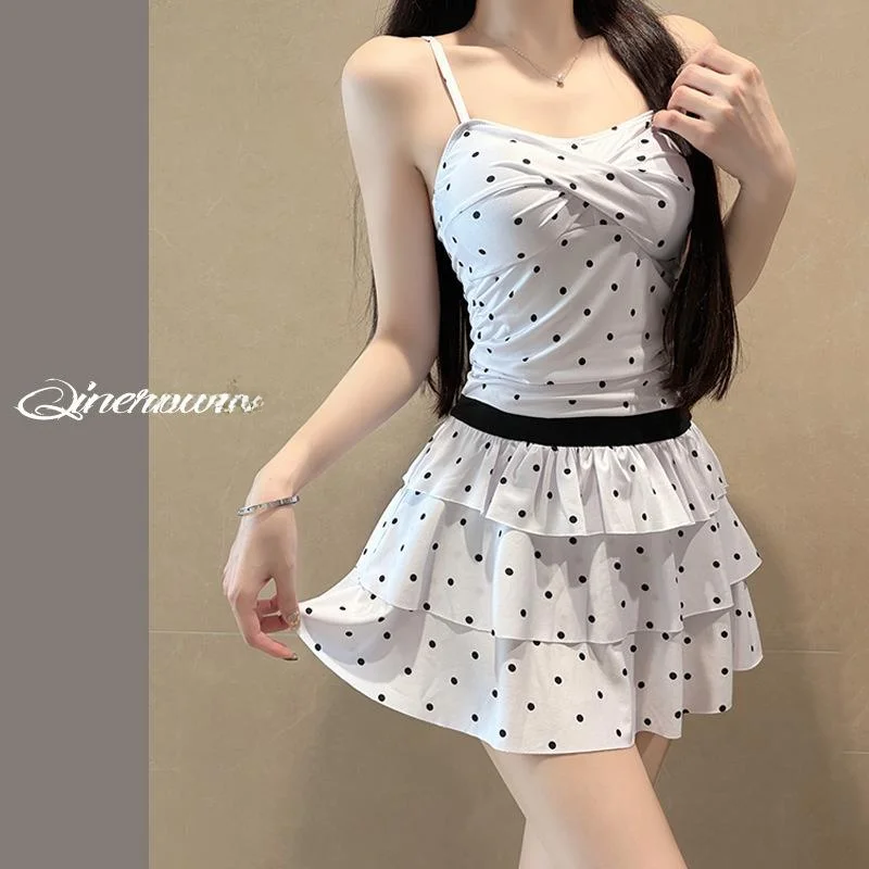 레트로 폴카 도트 원피스 수영복 여성용 비치 써멀 스파 슬리밍 비키니 스트랩리스 워터 스포츠웨어 여성 수영복