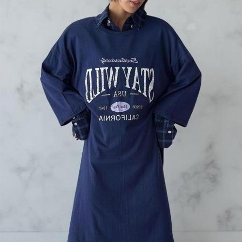 [다잇템][다잇템] 여자 라글란 튜닉 파랑색 박스 아방핏 롱슬리브 티셔츠_22145098_588872