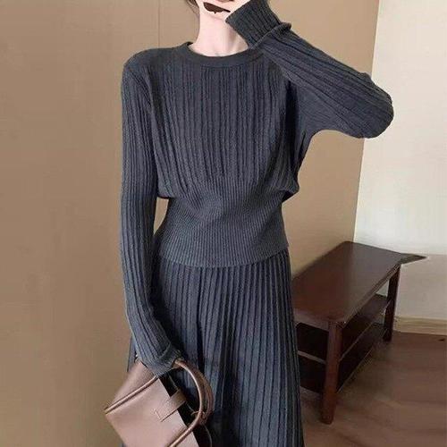 [신상오픈런]여성 가을 오버사이즈 긴팔 니트 스커트 투피스 세트