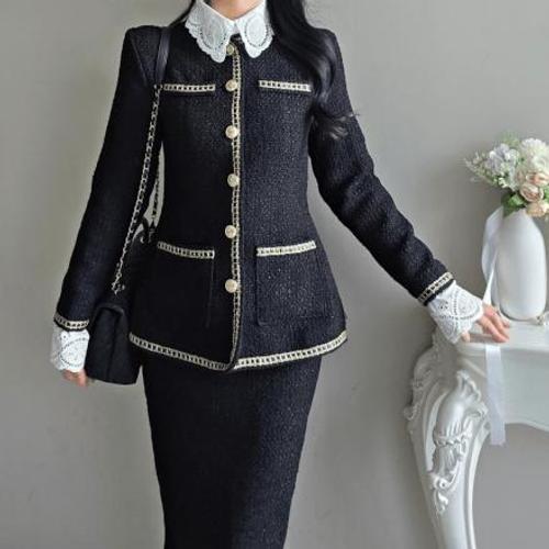 [르뚜앙]버부비 봄 가을 하객룩 투피스 셋업 자켓 롱스커트 세트 정장 페미닌룩 오피스룩 모임룩 블랙 그..