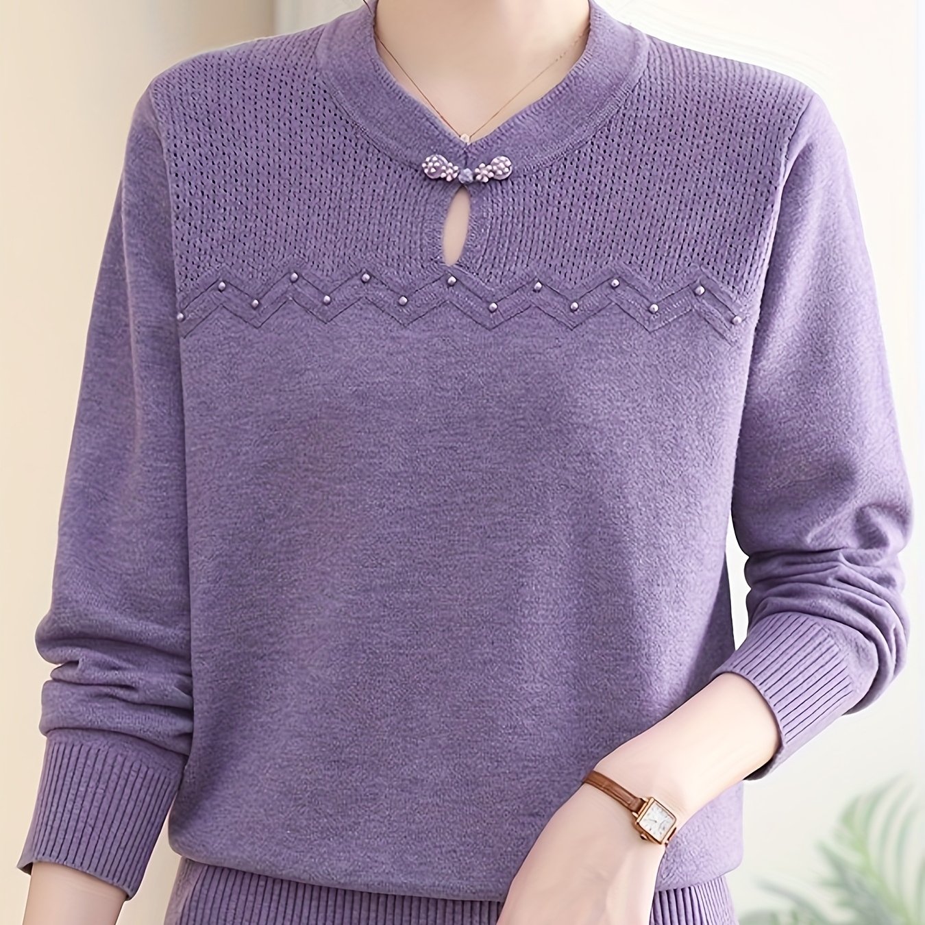 TEMU 플러스 사이즈, 여성용 플러스 사이즈 우아한 중국식 칼라 스웨터 - 루즈핏 스탠드 칼라 블라우스, 겨울용 따뜻한 스웨터 & 캐주얼 웨어, 솔리드 컬러 루즈핏 풀오버 (손세탁 가능) - 신상 가을 겨울 컬렉션, 가을/겨울에 적합|빅사이즈