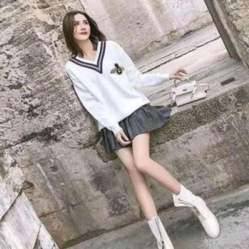 V넥 스쿨룩 F32133 니트티 기본스타일 심플 스웨터