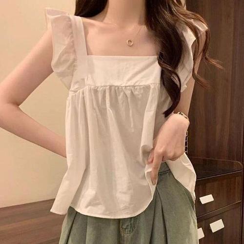 러블리 스퀘어넥탑 셔링 블라우스 프릴디자인 러 WFKPDIV