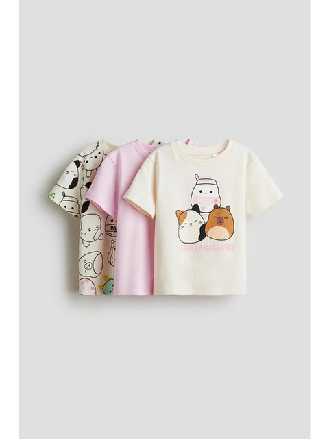 [에이치엔엠] 프린트 저지 탑 3장 세트 크림/스퀴시멜로우 0937175073