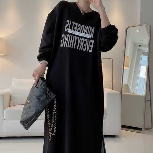 슈팅스타 / 데님 배색 맨투맨 오버핏 스트릿 믹스 롱 원피스