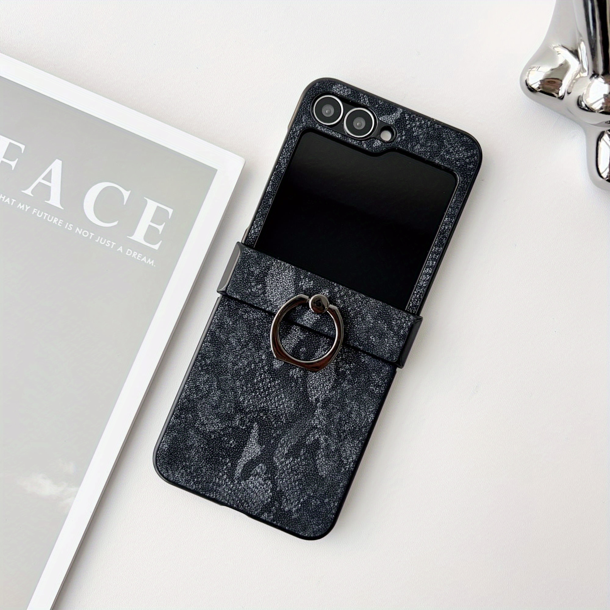 TEMU 갤럭시 Z 플립 6용으로 설계된 세련된 뱀 패턴 링 폰 케이스, 갤럭시 Z 플립 5와 호환 가능하며, 미니멀한 디자인을 특징으로 합니다.