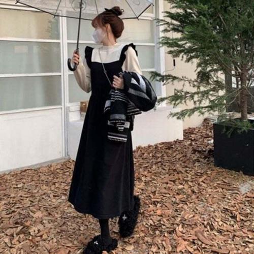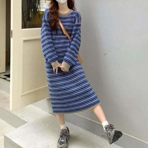 [셀럽하우스]편안한 LIOQ8006 방한 니트 스타일 롱 원피트 여유있는 핏 데일