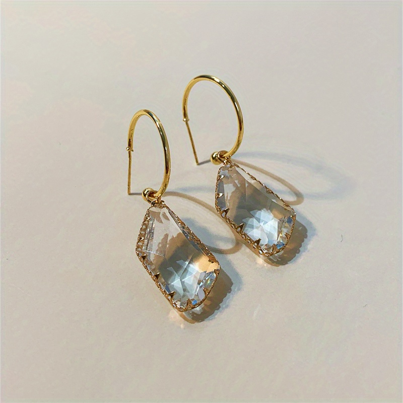 TEMU 금도금 사각 펜던트 유리 귀걸이 - 아름다운 얼굴 장식