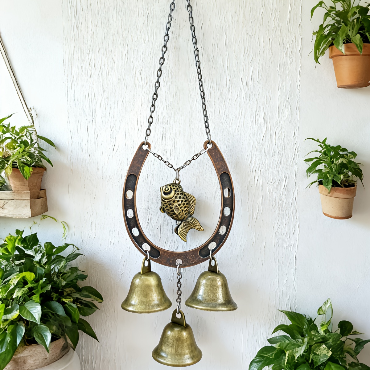 TEMU 행운의 대형 말발굽 풍경, 야외 철제 아트 사랑 풍경, 빈티지 말발굽 디자인, 장식 체인과 골드피쉬 펜던트, 홈 데코, 벽 바 장식, 안뜰 정원 걸이 장식품으로 적합