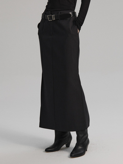 [스테이피플] 핀스트라이프 H라인 스커트 - 다크 그레이