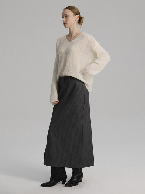 [스테이피플] 핀스트라이프 H라인 스커트 - 멜란지 그레이