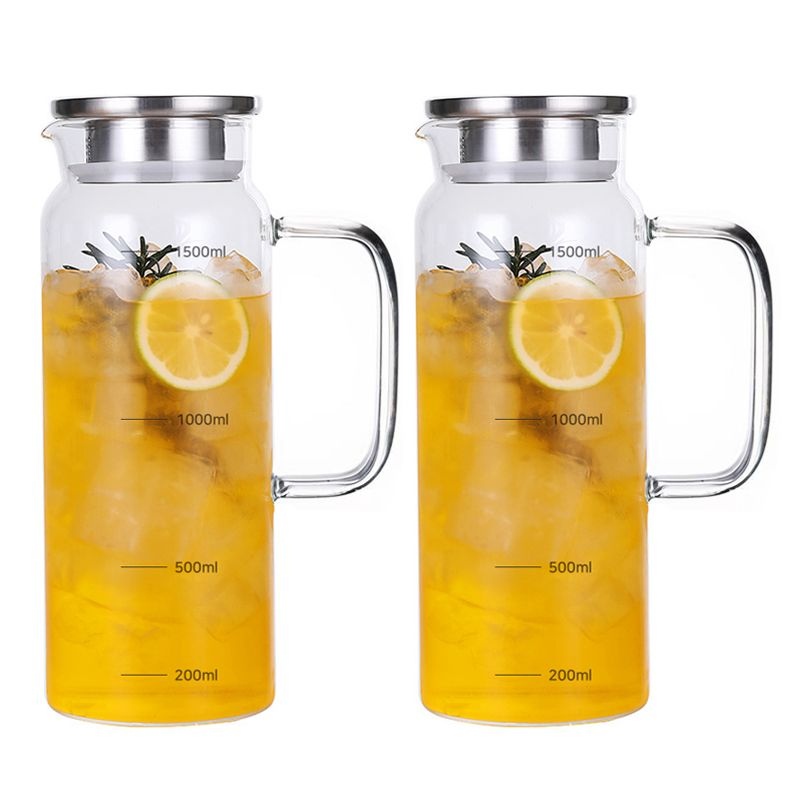 1+1 스테인리스 내열유리 냉장고 눈금 물병 1.5L