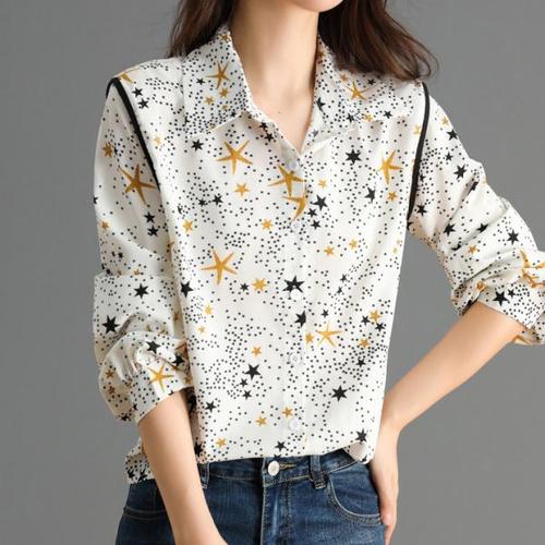 [퀸이즈][퀸이즈] [88까지]번드 스텔라 패턴 셔츠 블라우스