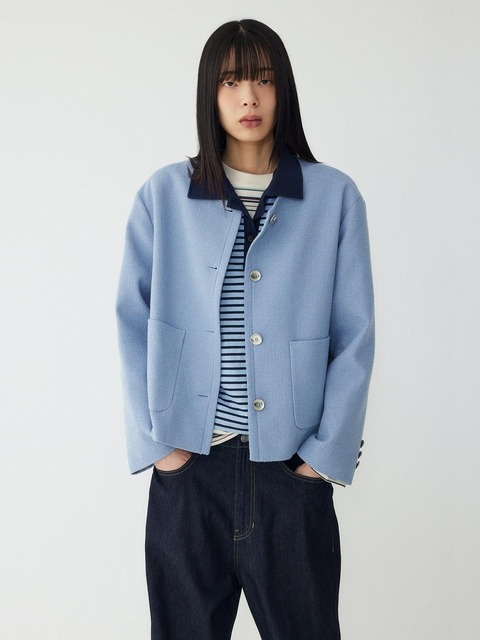 [스튜디오 톰보이] 빅포켓 라운드넥 트위드 자켓_블루 9176112972