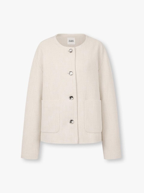 [스튜디오 톰보이] 빅포켓 라운드넥 트위드 자켓_아이보리 9176112972