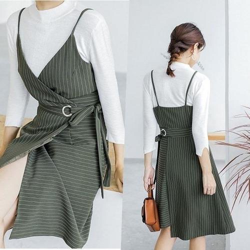 [엄지척]링 허리랩 줄무늬 원피스_19909879_667501