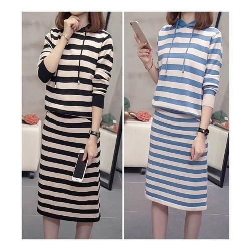 [엄지척]밴딩 롱 여자 단가라 세트 스커트 스트라이프 후드_19646113_667501