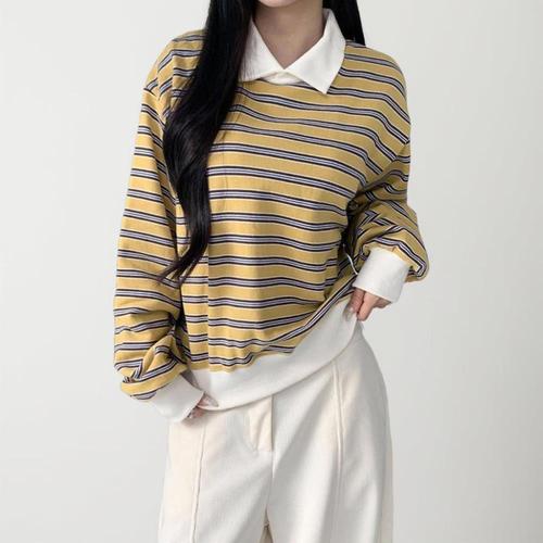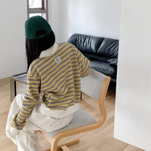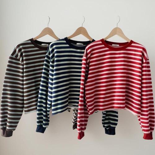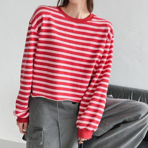 [다잇템_패션]여자 단가라 세미크롭 티셔츠 줄무늬 맨투맨