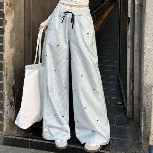 [신상오픈런]여성 사무실 패션 스트라이프 루즈핏 와이드 밴딩 팬츠