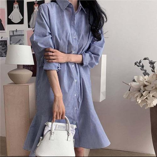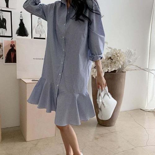 [셀럽하우스]G126620_밑단프릴 KDUQ2947 스트라이프 셔츠원피스