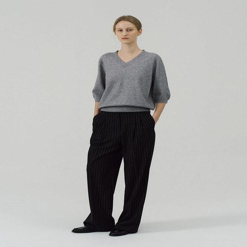 (215921BY33) [에잇세컨즈] 투 턱 스트라이프 슬랙스 그레이