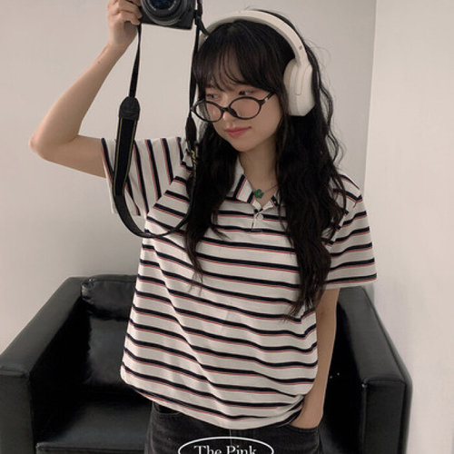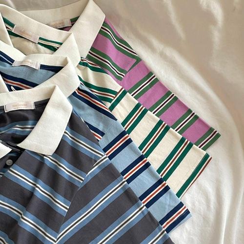 [아이러브제이] 오선샤인 스트라이프 카라 티 JWWTO55