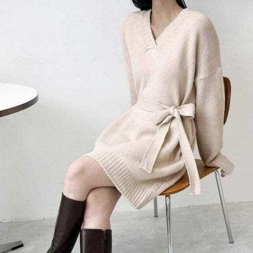 [셀럽하우스]브이넥 DFPZ9452 니트 데일리 리본 원피스 스트랩 데이트룩 하