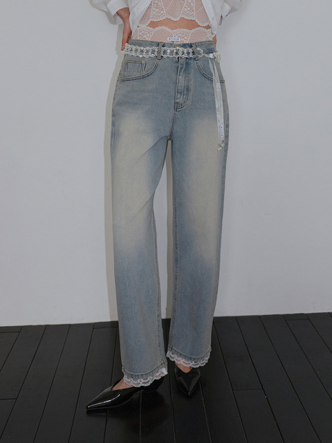[최에] 언더 레이스 스트레이트 데님 팬츠