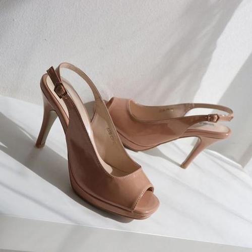 에나멜 둥근코 가보시 오픈토 스트랩 슬링백 펌프스힐