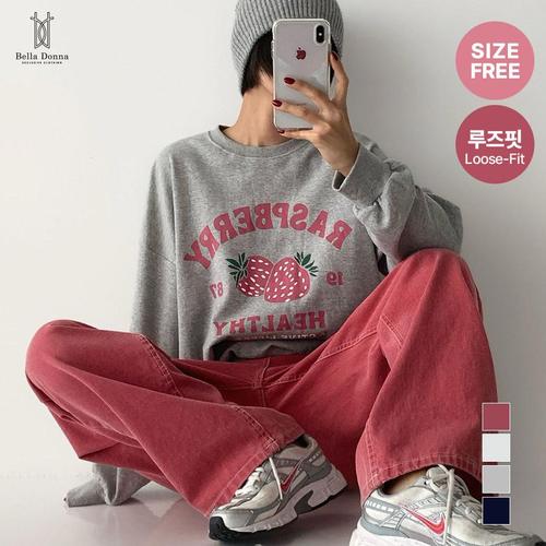 벨라도나 국산 여성 가을 맨투맨 라즈베리 딸기 나염 긴팔티셔츠 BLN25_MT41