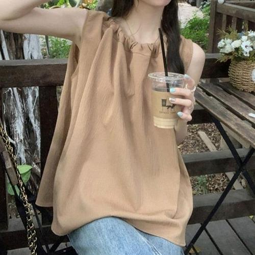 [엄지척]넥 스트링 민소매 블라우스 내츄럴핏 데일리_19659231_667501