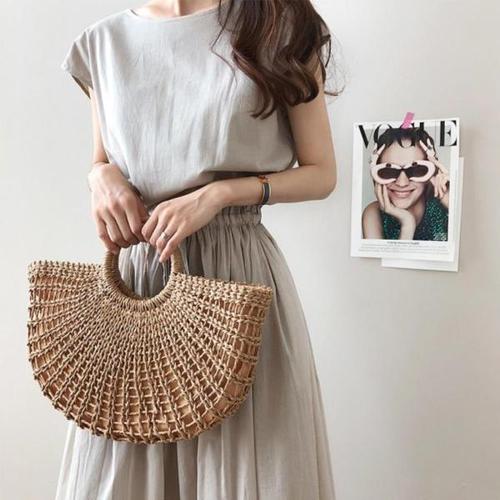 [옷자락]여성 심플 코튼 캉캉 스트링 반팔 롱 원피스