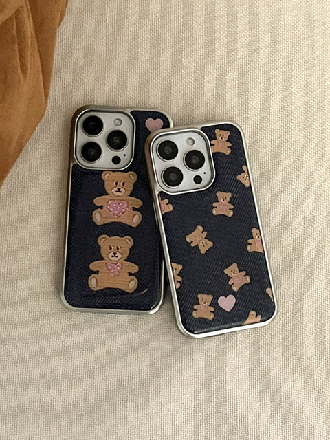 [메이드모먼] love teddy stitch 디자인 [미러 실버 범퍼케이스]