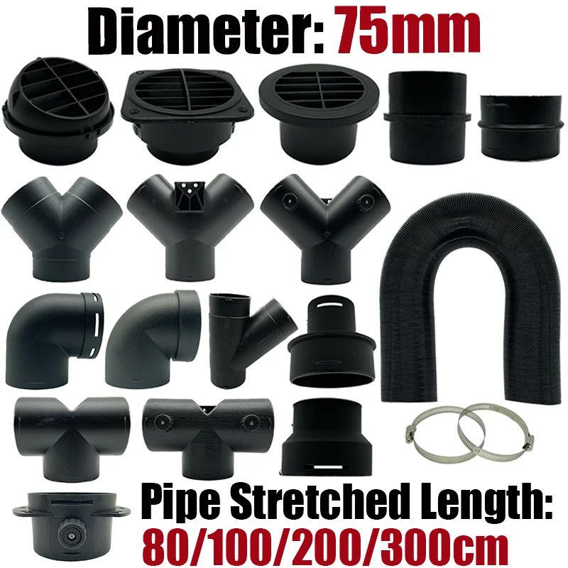 에어 디젤 히터 75mm 직경 0.8/1/2/3M 길이 덕트 파이프 튜브 호스 배출구 Webasto Eberspaecher 용 배기 조이너 커넥터