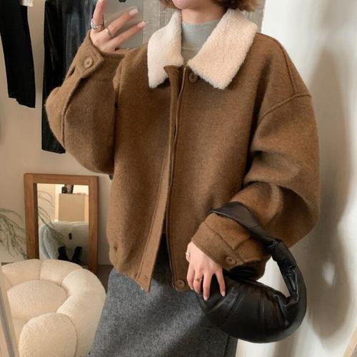 TEMU 마일라드 반응 빈티지 루즈핏 브라운 긴소매 안티벨벳 포켓 여성용 자켓, 봄/가을 출퇴근용