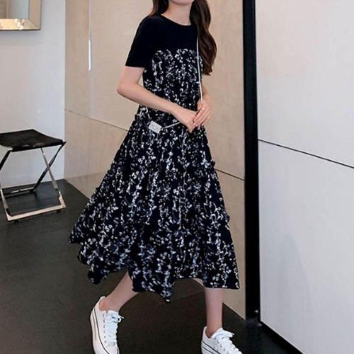 원피스 OPS 여성 플라워 패턴 반팔 바캉스룩 휴양지룩