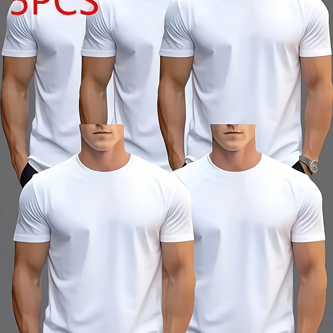 TEMU 남성용 퀵 드라이 경량 반팔 티셔츠 5종 세트, 라운드넥, 단색, 통기성, 사이클링, 야외 활동, 헬스, 러닝에 적합