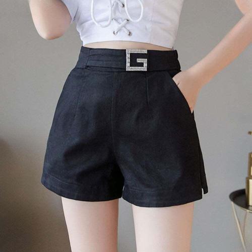 [셀럽하우스]여성 FNSB8804 여름 큐빅버클 포인트 스판 숏 반바지 핫팬츠