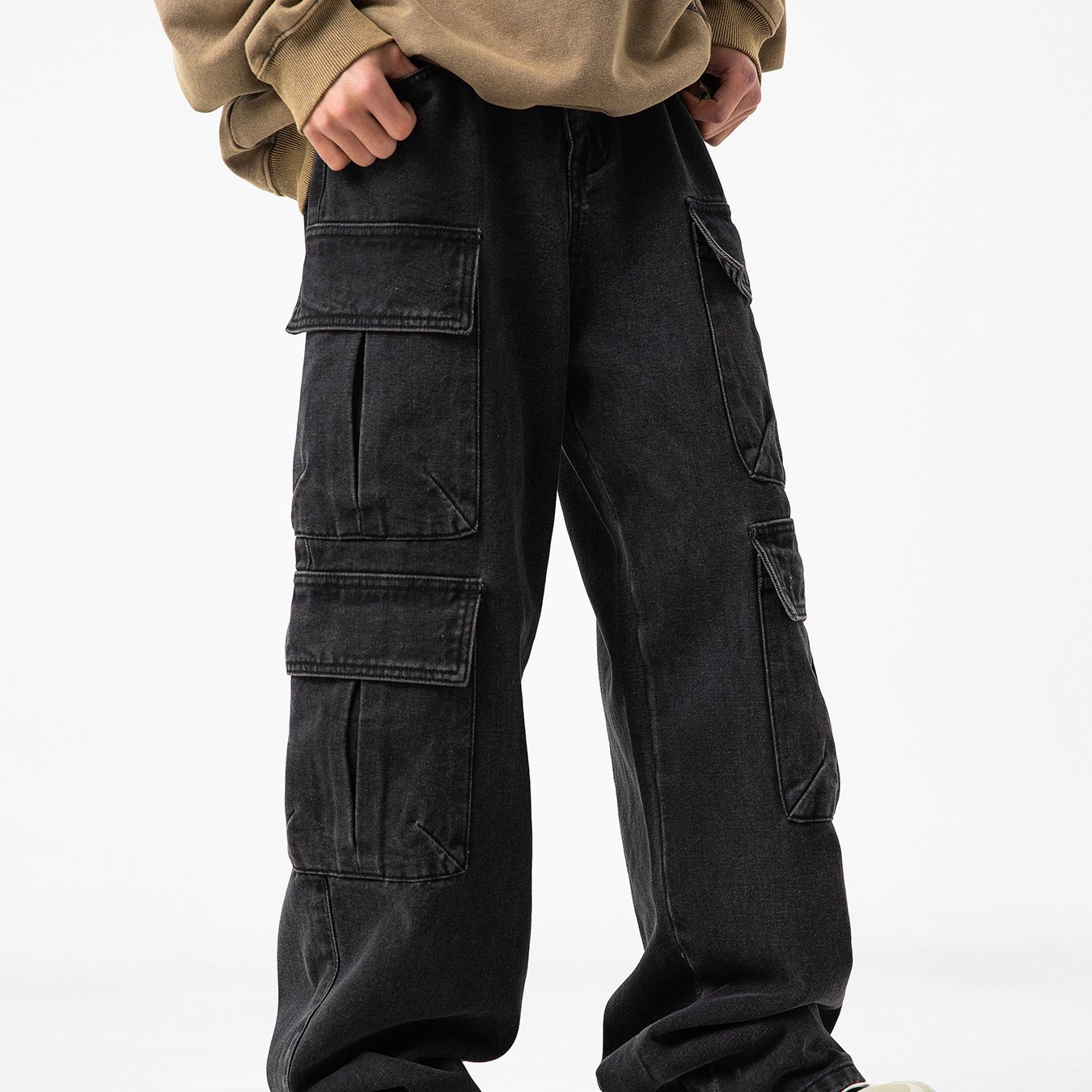 TEMU 남성용 미국식 빈티지 포켓 워싱 빈티지 청바지 루즈핏 카고 바지