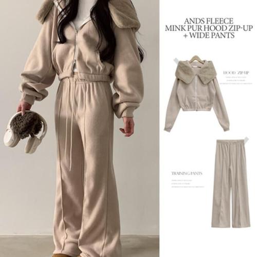 더핑크 / 안즈 후리스 밍크 퍼 투웨이 후드 집업 와이드 팬츠
