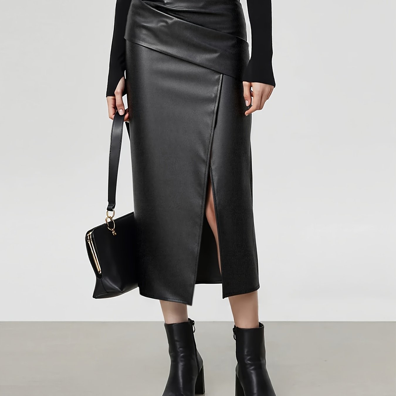 TEMU 사계절 착용 가능한 미디 스커트, 플리츠 슬릿 스커트, 캐주얼하면서도 우아한 스타일, 거리, 출퇴근, 집, 데이트, 사교 행사에 적합한 여성 의류